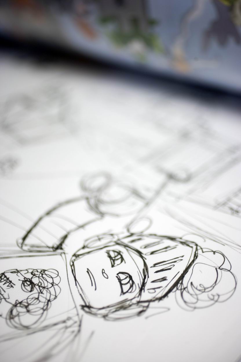 Afbeelding 4 t/m 6: Na het tekenen op papier, gaat een tekenaar op de computer aan de slag met het ontwerpen van prototypes.