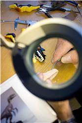 Afbeelding 9/10 (links): Soms moet er voor een nieuw model nieuwe elementen worden ontwikkeld. Eerst maakt men een afgietsel van klei om te kijken hoe het element er uit moet zien.